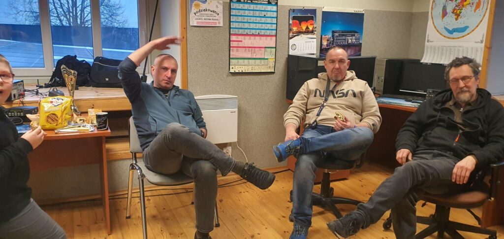 Wieczorem kontynuowaliśmy spotkanie w sali klubowej. Był czas na podsumowania, rozmowy organizacyjne oraz swobodną integrację – również z najmłodszymi uczestnikami, którzy coraz śmielej pojawiają się w naszym środowisku. To szczególnie cieszy – bo krótkofalarstwo to pasja międzypokoleniowa.